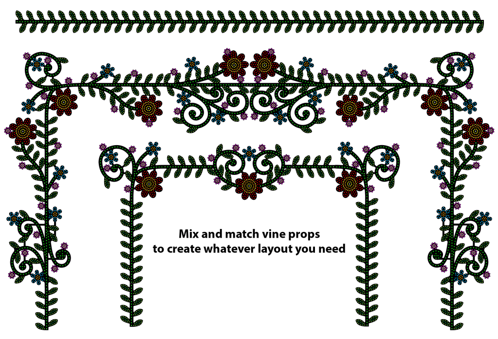 Our vine props are versatile, interchangeable, and mix-n-match. Combine as many or as few of these props together to create a completely unique display. Design your vine layout using our handy “Print and Play” PDF.